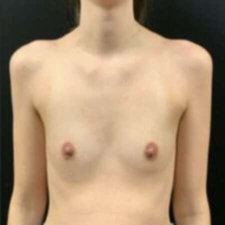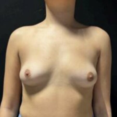 Bij deze dame is een borstvergroting gedaan met het merk Perle. Dit is een ronde prothese, de plaatsing is dual plane = deels onder de spier, bdz 365cc.