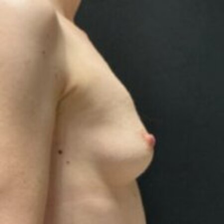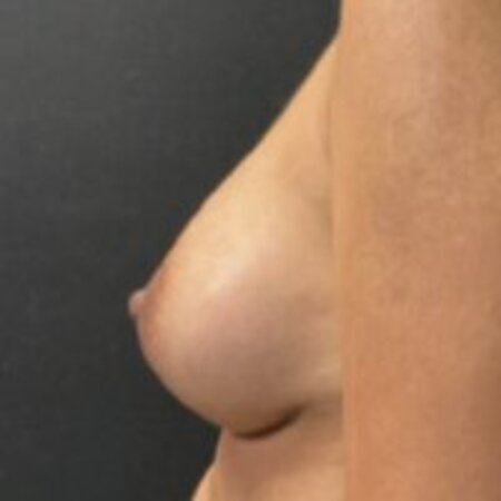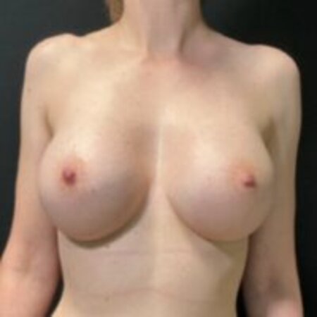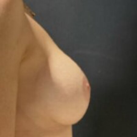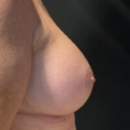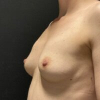 Bij deze vrouw is een borstvergroting uitgevoerd met een ronde zachte Perle prothese 300cc. De protheses zitten deels onder de spier (dual plane), voor een mooie natuurlijke look.