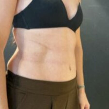 We hebben een uitgebreide buikwandcorrectie uitgevoerd, waarbij we de rectus spieren hebben gereefd voor herstel van de buikwand contour en hebben we in totaal 1100 gram huid/ vet weefsel verwijderd met 400 cc liposuctie.