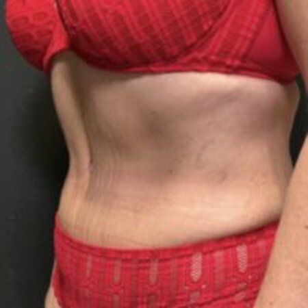 We hebben een uitgebreide buikwandcorrectie uitgevoerd, waarbij we de rectus spieren hebben gereefd voor herstel van de buikwand contour en hebben we in totaal 1100 gram huid/ vet weefsel verwijderd met 400 cc liposuctie.